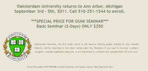 An opportunity to network and learn about the medical marijuana movement with Oaksterdam University in Ann Arbog, Michigan will be taking place over the Labor Day Weekend. Tammy Schnock asked me to pass this message along to any other Iowans who might be interested in making the trip: