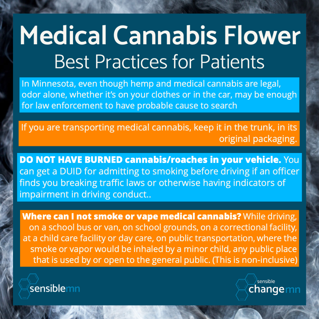 Here’s some guidance again from Sensible Minnesota on Minnesota law and best practices for cannabis users: