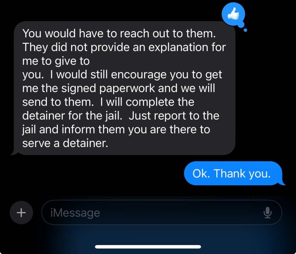 I received this text from my po two days later: