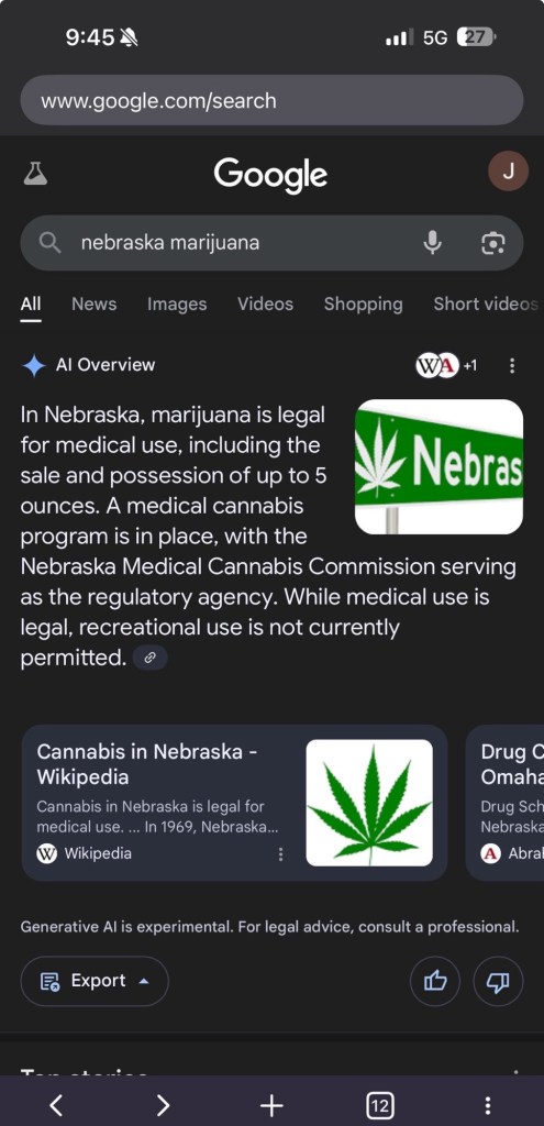 April 30: google ai says possessuonncurrently legal in Nebraska: