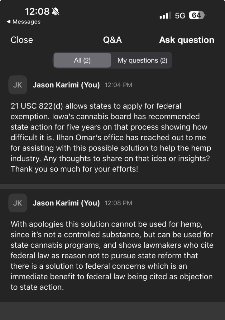 Of interest to note, the webinar discussed efforts in Ohio by lawmakers who passed laws to reverse and restrict the voter approved cannabis laws out there. Apparently an Ohio law review article states that one attorney reads the Ohio Constitution as forbidding lawmakers from passing laws that counter the voters intent. So, litigation may reverse Ohio lawmakers restrictions out in Ohio. I don’t really care about state laws if they aren’t talking about federal exemption, but a lobbyist friend of mine who was national activist of the year for Young Americans for Liberty, and my roommate during a US Senate campaign race I worked on in Georgia in 2020 during a special election, has been asking me for updates on Ohio, where he lobbies on issues, so I passed that word along to him.