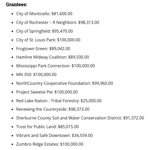 - The State of Minnesota provides grants to MN 350 (another random nonprofit), like this one for $100,000.