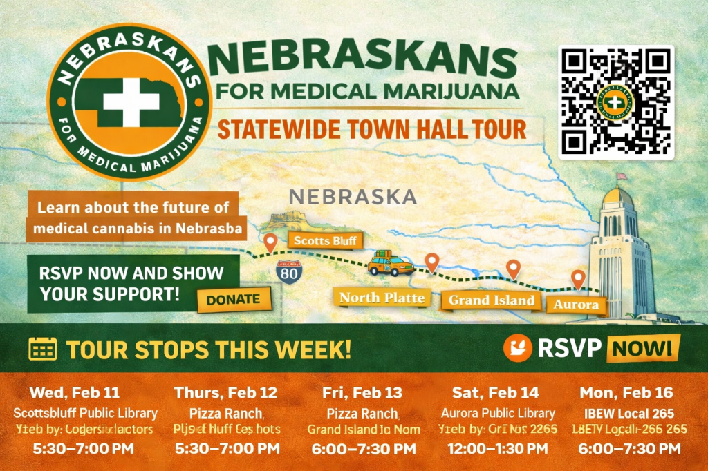 Nebraskans for Medical Marijuana (NMM) is hitting the road this week with a statewide town hall tour aimed at updating patients, families, and community members on the current status of Nebraska’s medical cannabis program — and what comes next.