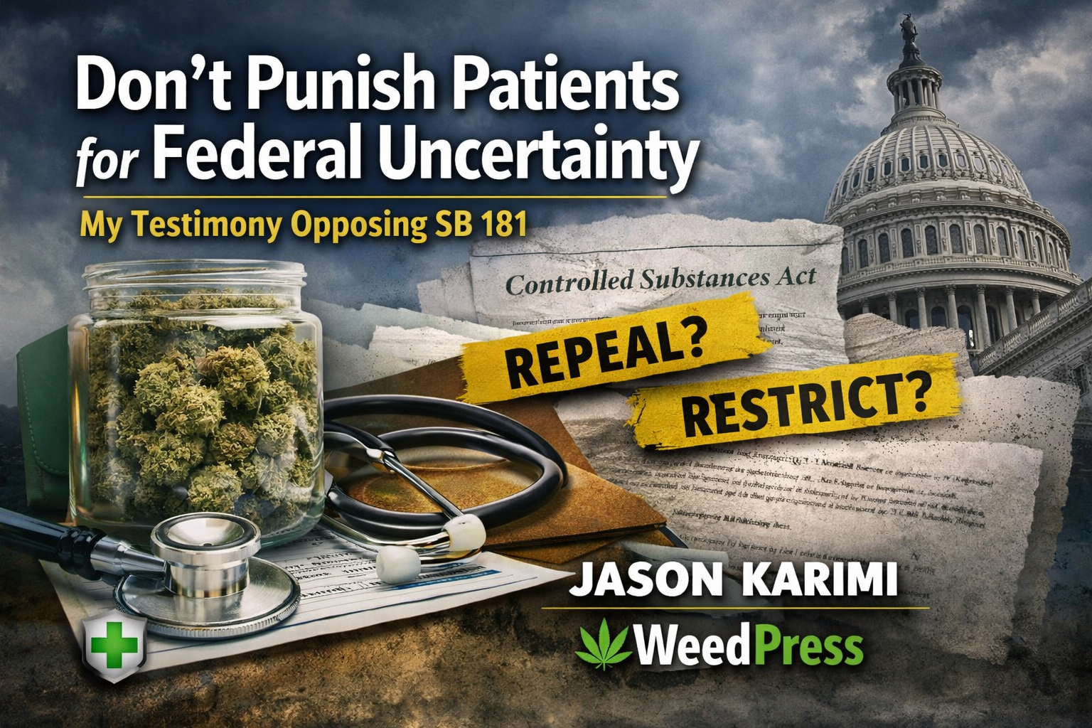 Don’t Punish Patients for Federal Uncertainty: My Testimony Opposing SB 181 By Jason Karimi | WeedPress March 6, 2026 Video record: https://youtu.be/3u0VY7OIvlI South Dakota Senate Health & Human Services Committee — February 11, 2026 On February 11, 2026, I spoke twice to the South Dakota Senate Health & Human Services Committee to oppose two bills … Continue reading Don’t Punish Patients for Federal Uncertainty: My Testimony Opposing SB 181